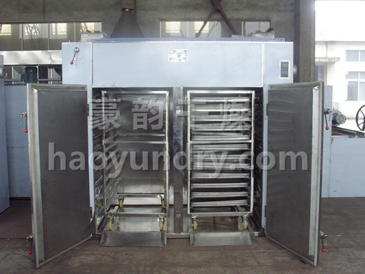 | 型号规格 | 每次干燥量(kg) | 风机功率(kw) | 耗用蒸气(kg/h) | 烘车((辆)(set) | 烘盘(只) | 宽×深×高(mm) | 上下温度(℃) |